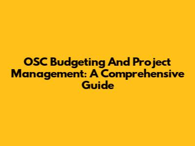 OSC Budgeting And Project Management: A Comprehensive Guide