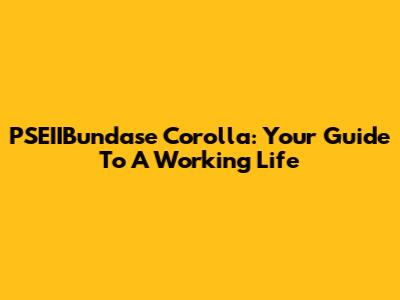 PSEIIBundase Corolla: Your Guide To A Working Life