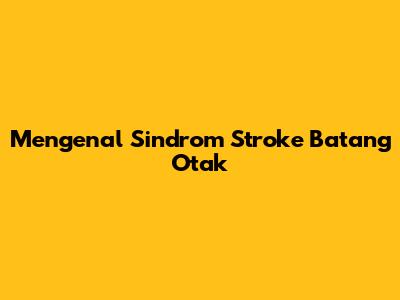 Mengenal Sindrom Stroke Batang Otak