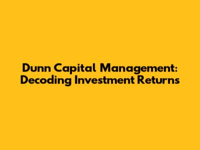 Dunn Capital Management: Decoding Investment Returns