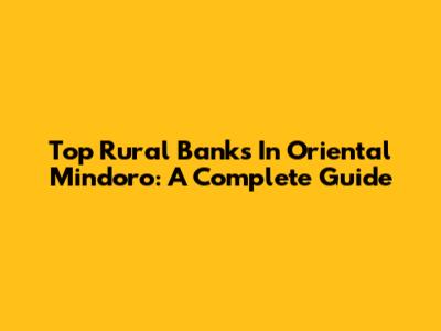 Top Rural Banks In Oriental Mindoro: A Complete Guide