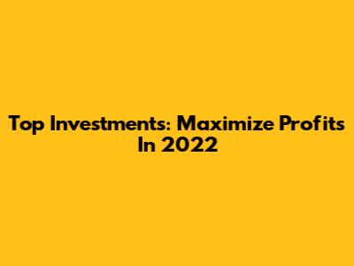 Top Investments: Maximize Profits In 2022