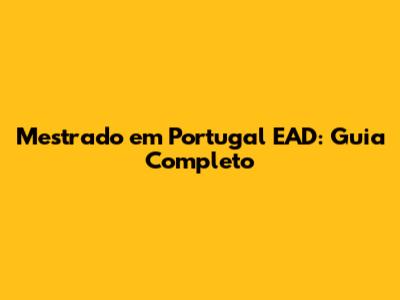 Mestrado Em Portugal EAD: Guia Completo