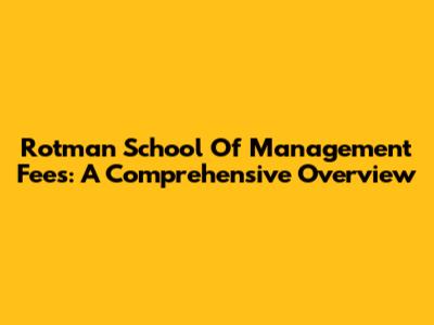 Rotman School Of Management Fees: A Comprehensive Overview