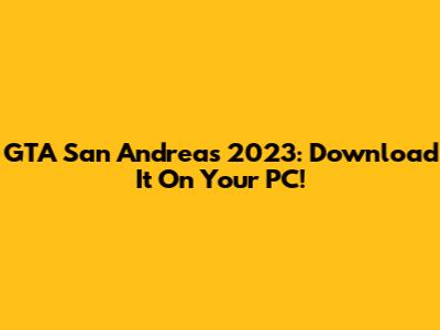 GTA San Andreas 2023: Download It On Your PC!