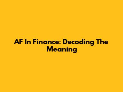 AF In Finance: Decoding The Meaning