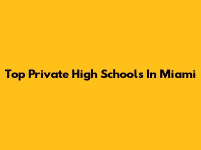 Top Private High Schools In Miami