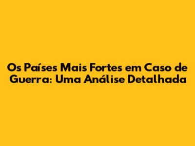 Os Países Mais Fortes Em Caso De Guerra: Uma Análise Detalhada