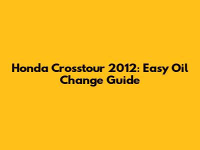 Honda Crosstour 2012: Easy Oil Change Guide