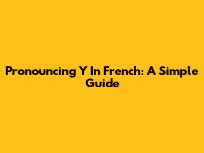 Pronouncing 'Y' In French: A Simple Guide