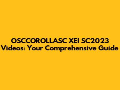 OSCCOROLLASC XEI SC2023 Videos: What You Need To Know