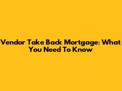 Vendor Take Back Mortgage: What You Need To Know