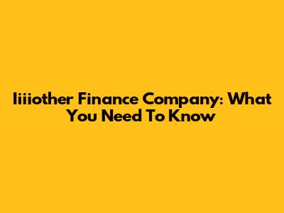 Iiiiother Finance Company: What You Need To Know