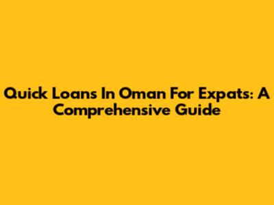 Quick Loans In Oman For Expats: A Comprehensive Guide