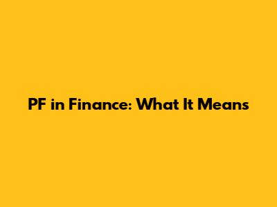 PF In Finance: What It Means