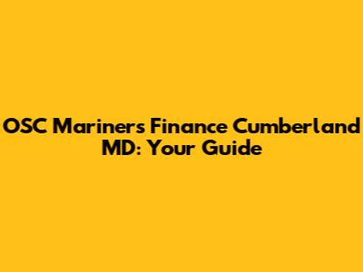 OSC Mariners Finance Cumberland MD: Your Guide
