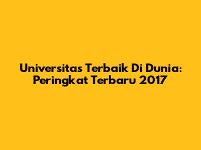 Universitas Terbaik Di Dunia: Peringkat Terbaru 2017