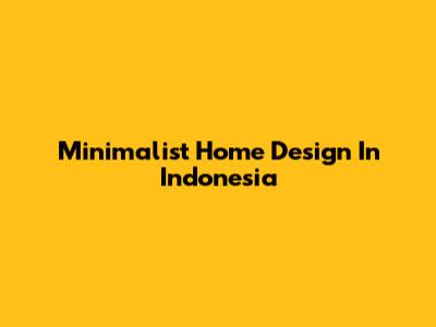 Minimalist Home Design In Indonesia
