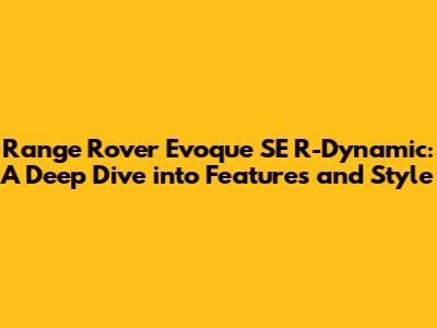 Hey guys! Let's dive into the world of luxury compact SUVs with a detailed look at the Range Rover Evoque SE R-Dynamic. This isn't just your average car; it's a statement. We're talking about a blend of sophisticated design, impressive performance, and cutting-edge technology all wrapped up in a package that screams 'I've arrived'. So, buckle up as we explore every nook and cranny of this stunning vehicle, ensuring you know exactly what makes the Evoque SE R-Dynamic a standout choice in its class.