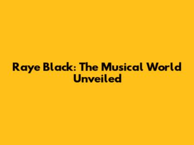 Raye Black: Unveiling The Singer's Journey