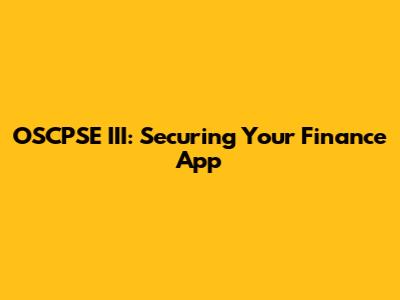 OSCPSE III: Securing Your Finance App