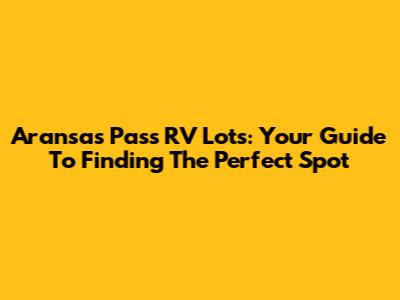 Aransas Pass RV Lots: Your Guide To Finding The Perfect Spot