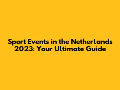 Sport Events In The Netherlands 2023: Your Ultimate Guide