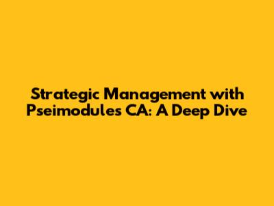 Hey guys! Let's dive into the fascinating world of strategic management using Pseimodules CA. If you're scratching your head wondering what all that entails, don't worry; we'll break it down in a way that's easy to understand and super useful. Think of strategic management as the master plan for your business, the roadmap that guides you from where you are now to where you want to be. And Pseimodules CA? Well, that's one of the cool tools you can use to make sure you're on the right track. So, buckle up and let’s get started!
