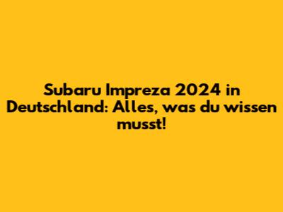 Hey Leute! Ihr wollt alles über den Subaru Impreza 2024 in Deutschland wissen? Ihr seid hier genau richtig! Wir tauchen tief in die Welt dieses coolen Kompaktwagens ein, checken alle Features, die neuesten Updates, Preise und alles, was ihr wissen müsst, um zu entscheiden, ob der Impreza 2024 der Richtige für euch ist. Also, schnallt euch an, und los geht's!