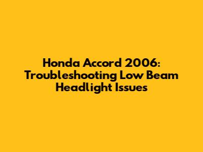 Honda Accord 2006: Troubleshooting Low Beam Headlight Issues