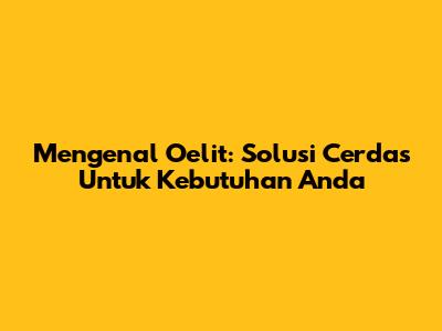 Mengenal Oelit: Solusi Cerdas Untuk Kebutuhan Anda