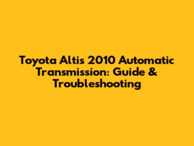 Toyota Altis 2010 Automatic Transmission: Guide & Troubleshooting
