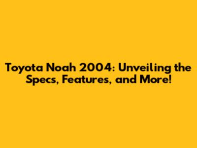 Toyota Noah 2004: Specs, Features, And More!