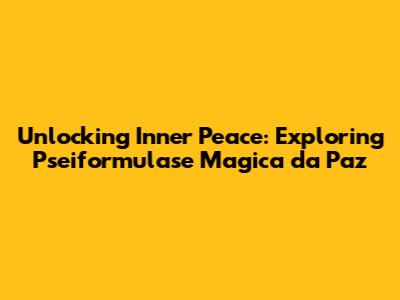 Unlocking Inner Peace: Exploring Pseiformulase Magica Da Paz