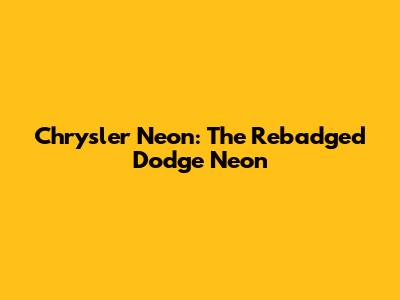 Chrysler Neon: The Rebadged Dodge Neon
