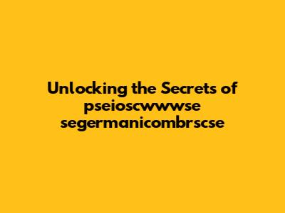 Unlocking The Secrets Of Pseioscwwwse Segermanicombrscse