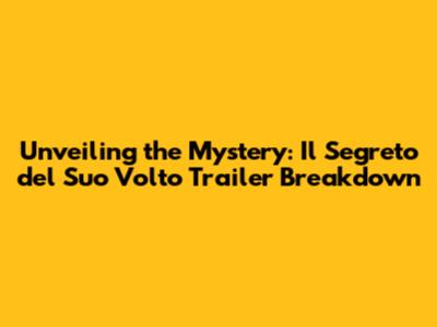 Unveiling The Mystery: 'Il Segreto Del Suo Volto' Trailer Breakdown