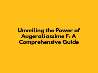 Unveiling The Power Of Augeraliassime F: A Comprehensive Guide