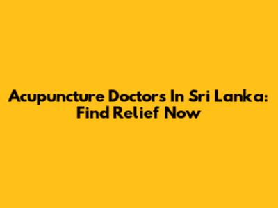 Acupuncture Doctors In Sri Lanka: Find Relief Now