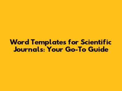 Word Templates For Scientific Journals: A Comprehensive Guide